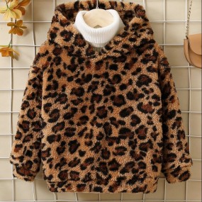 Young Girl Leopard Teddy Hoodie Without Sweater