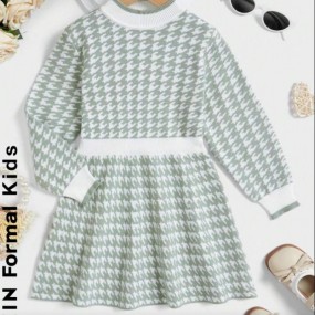 SHEIN Young Girl Houndstooth Pattern Mock Neck Sweater ...